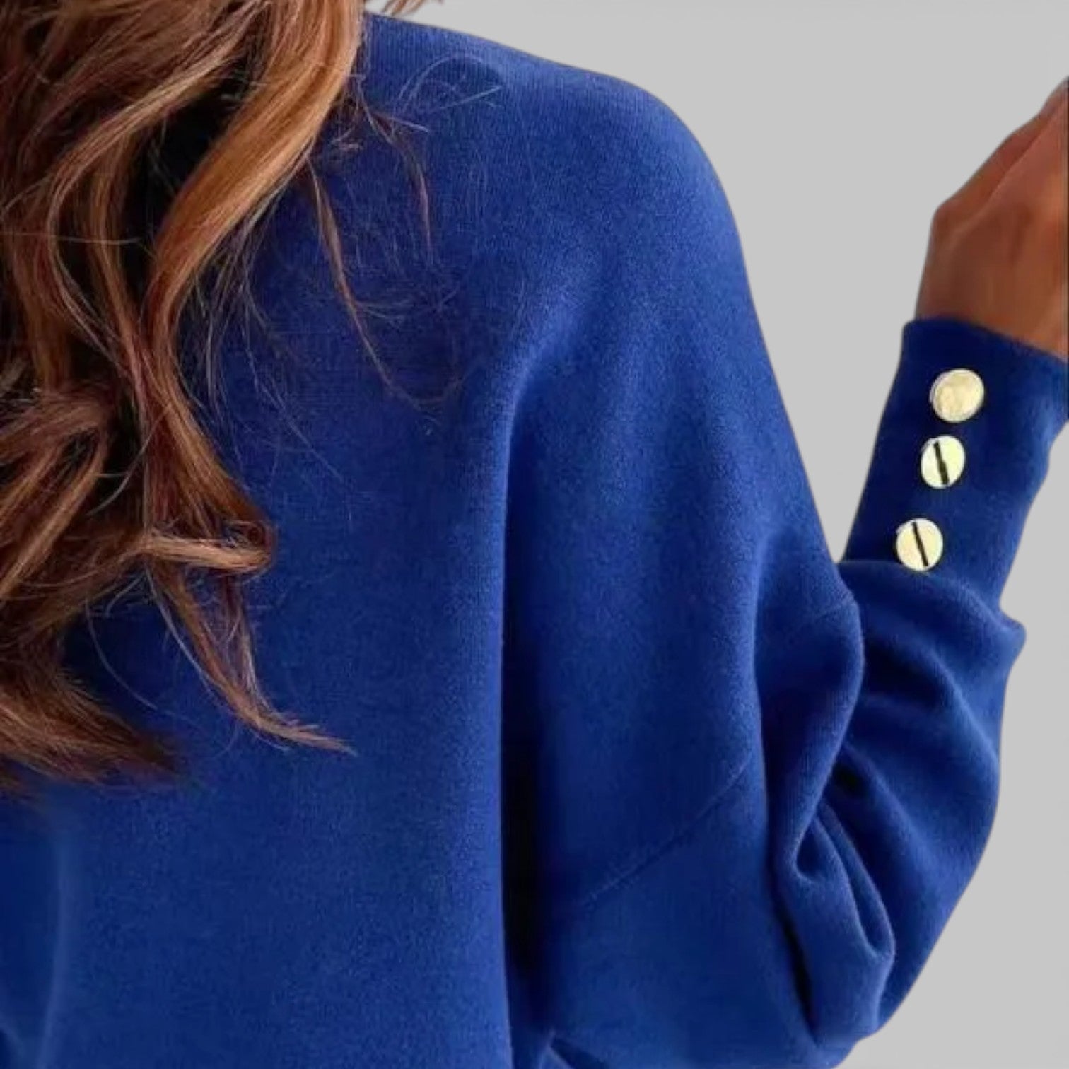 Tento elegantní svetr s výstřihem do V je nadčasovým základem pro každodenní stylizace, když chcete vypadat upraveně a cítit se pohodlně. Jednoduchý střih s mírně volným designem krásně sedí na postavě a ozdobné knoflíky na manžetách dodávají jemný, elegantní akcent. Ideální k džínům, látkovým kalhotám nebo sukni — hodí se do práce, na cestách a během klidných dnů.