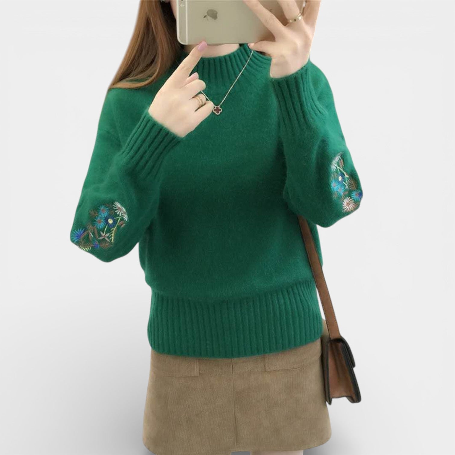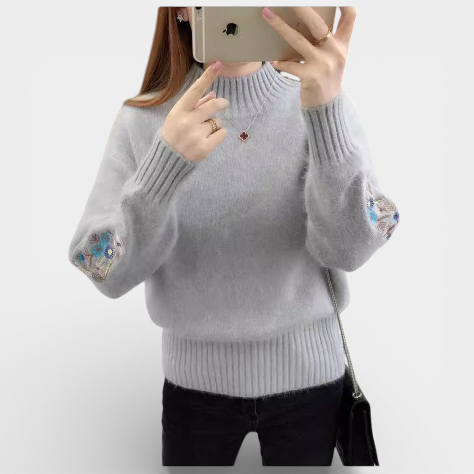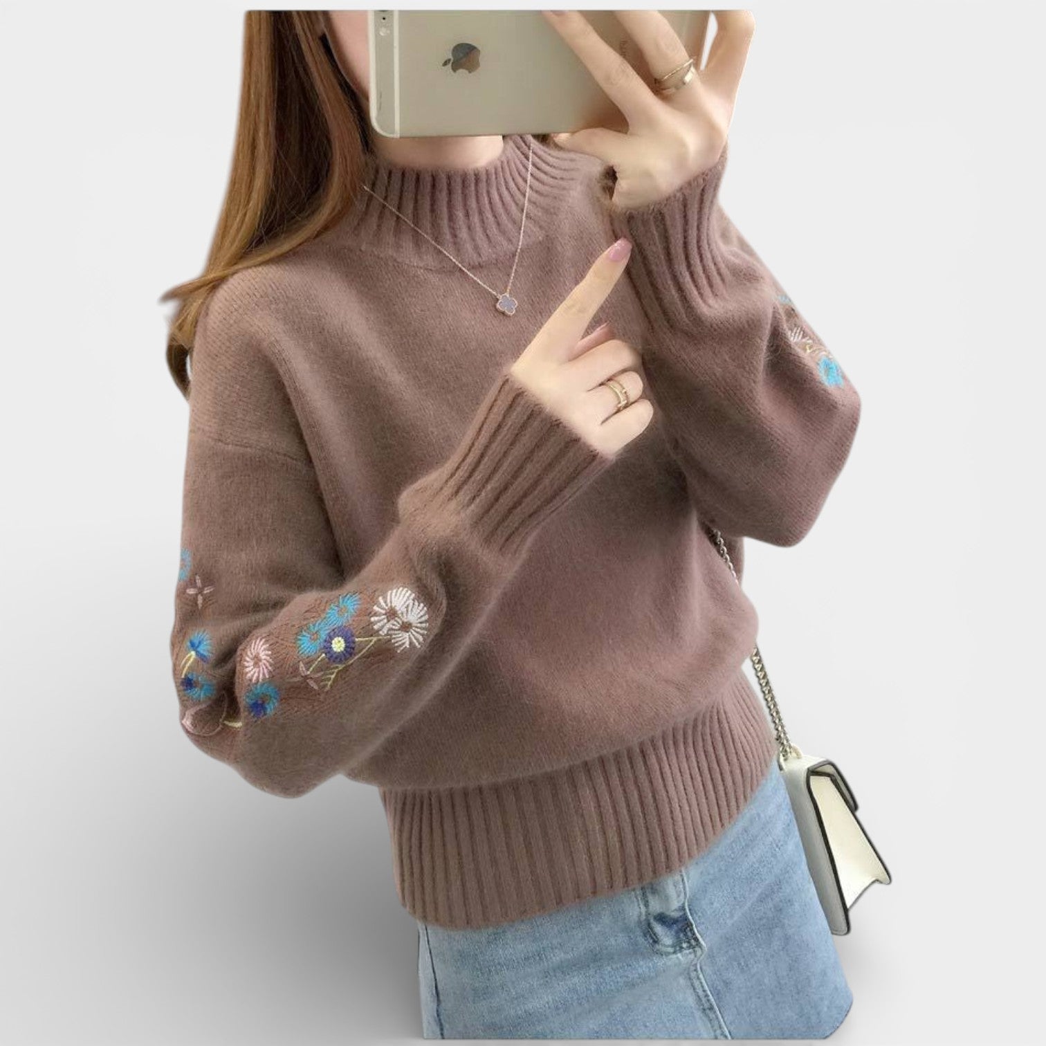 Florencie – Dámský svetr s květinovou výšivkou a stojáčkem