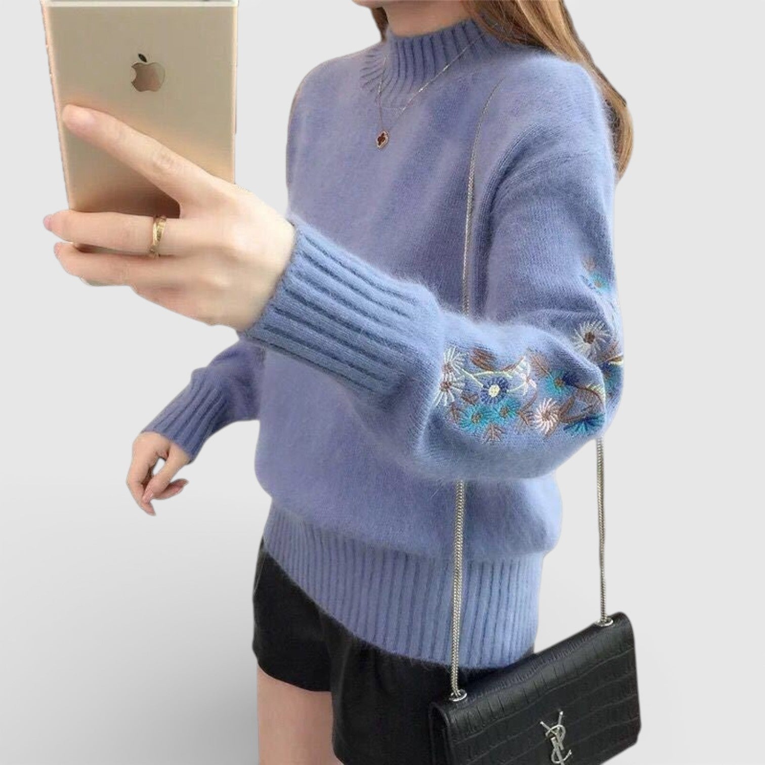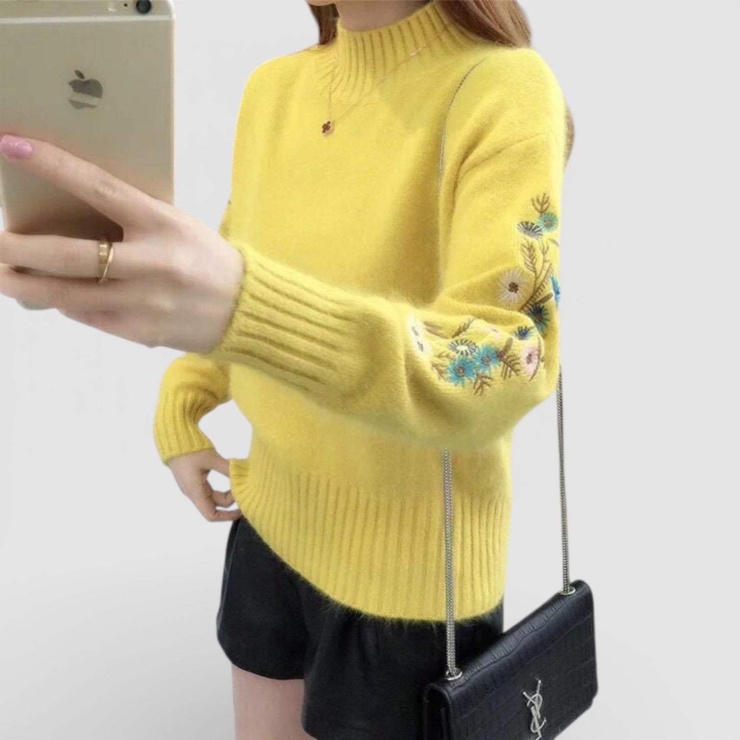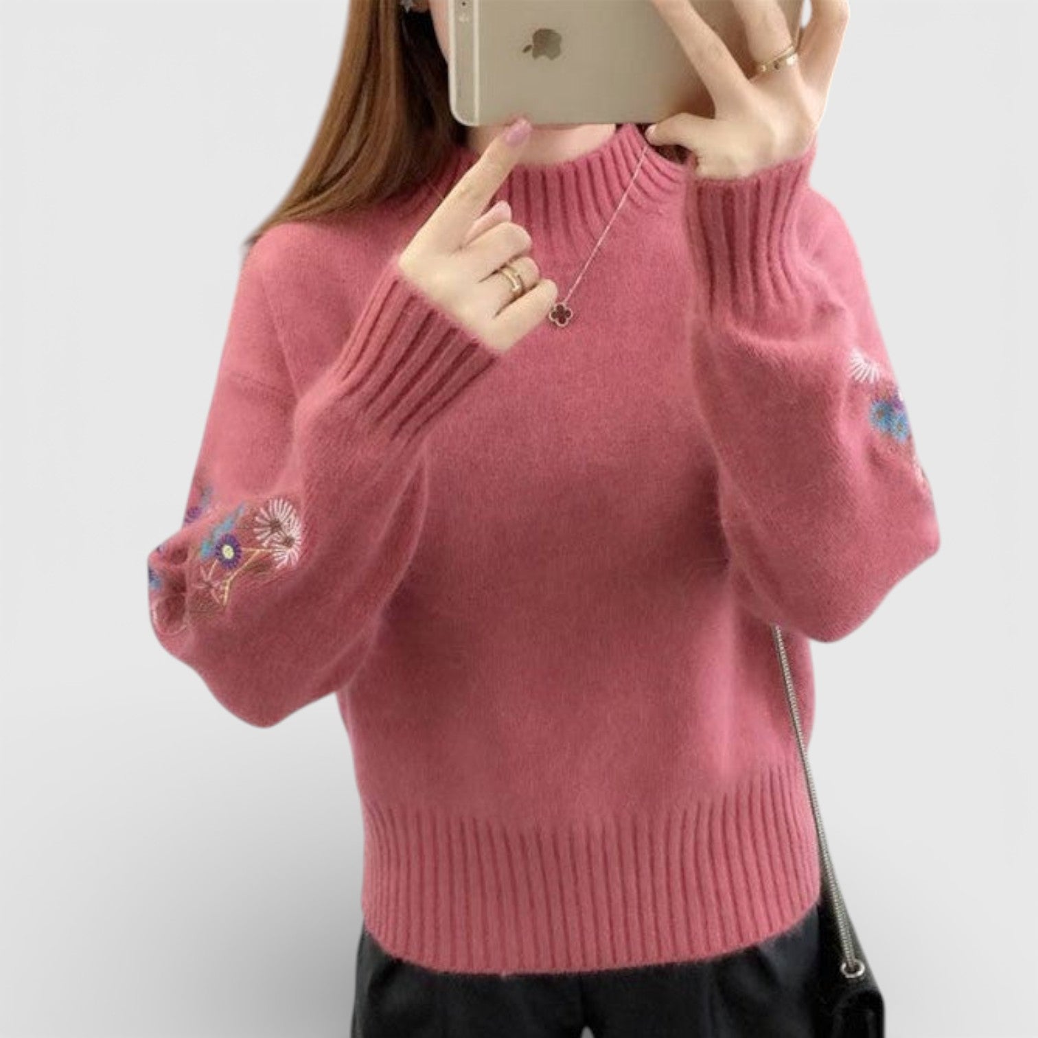 Florencie – Dámský svetr s květinovou výšivkou a stojáčkem