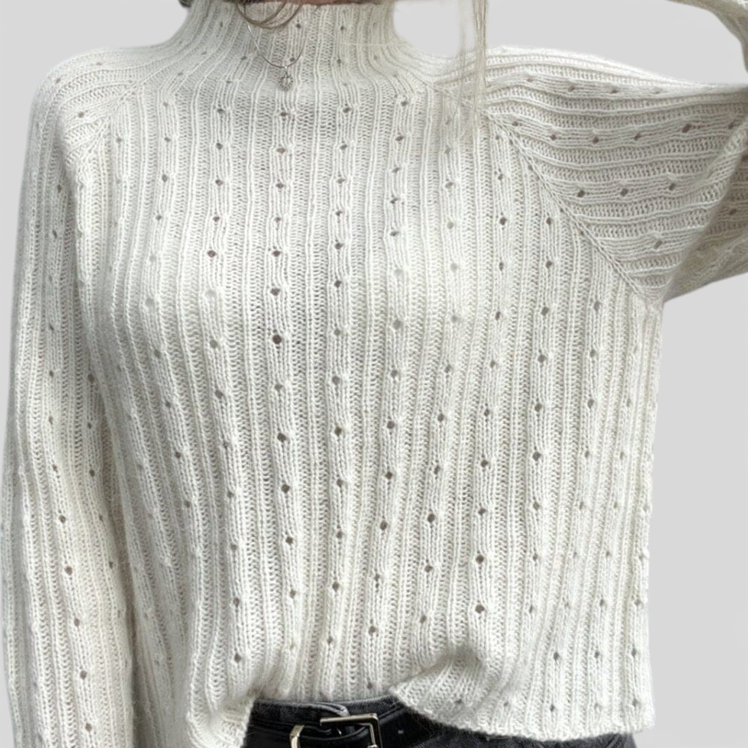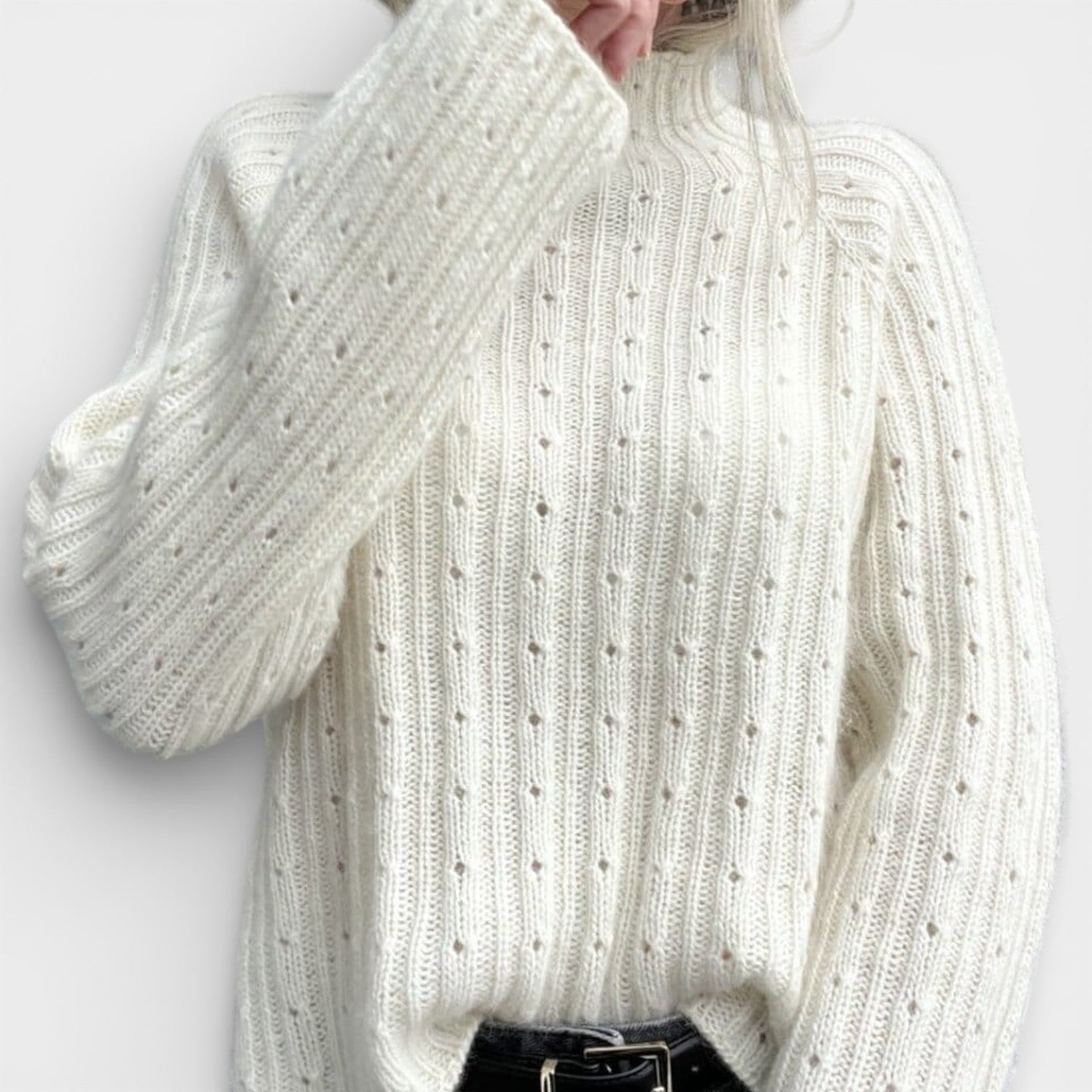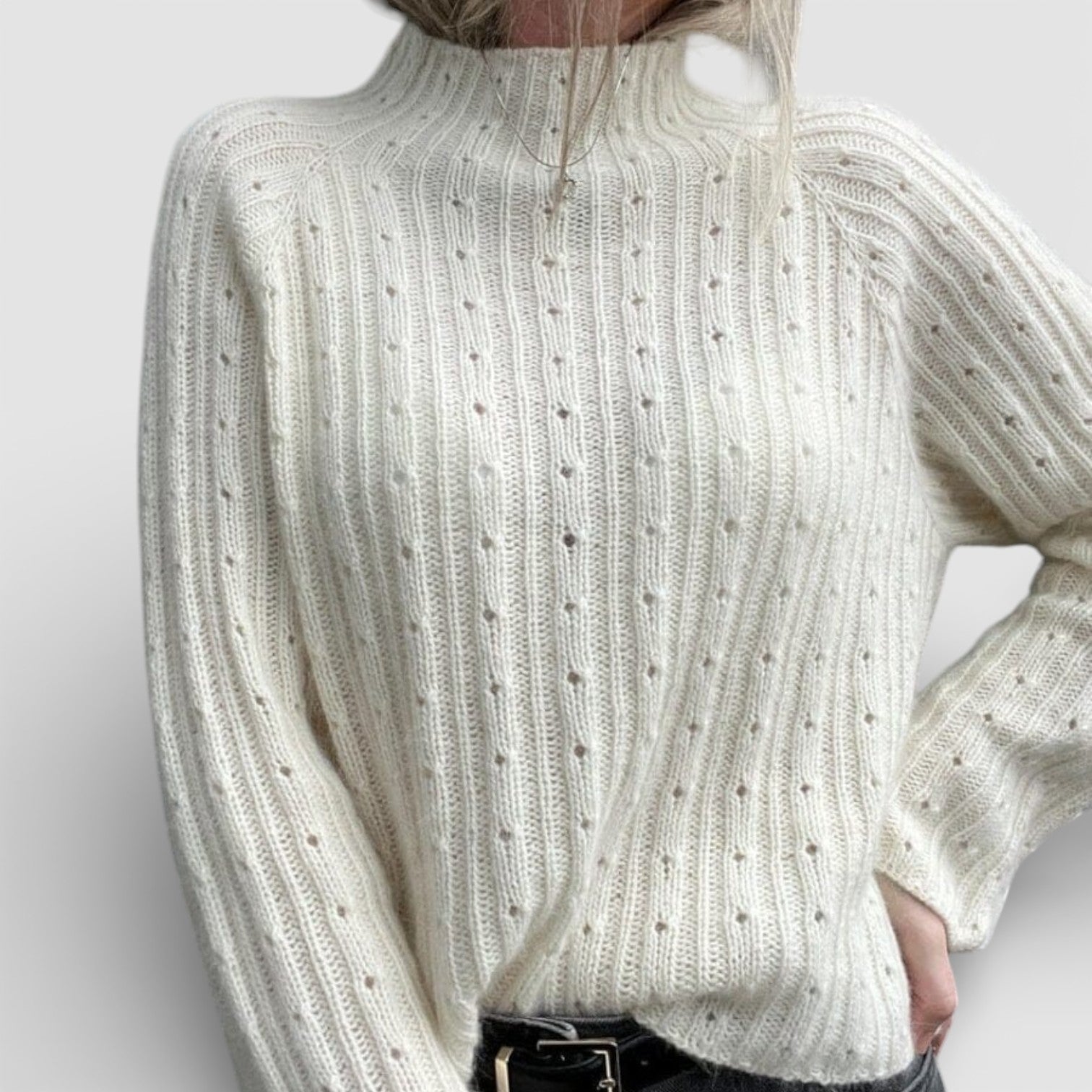 Lilianna – Pružný svetr s polo límcem a krajkovou strukturou