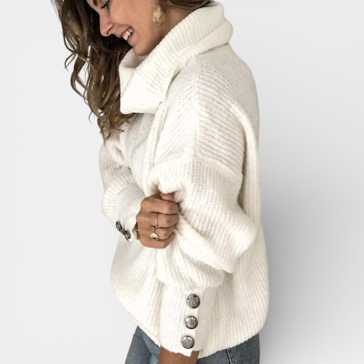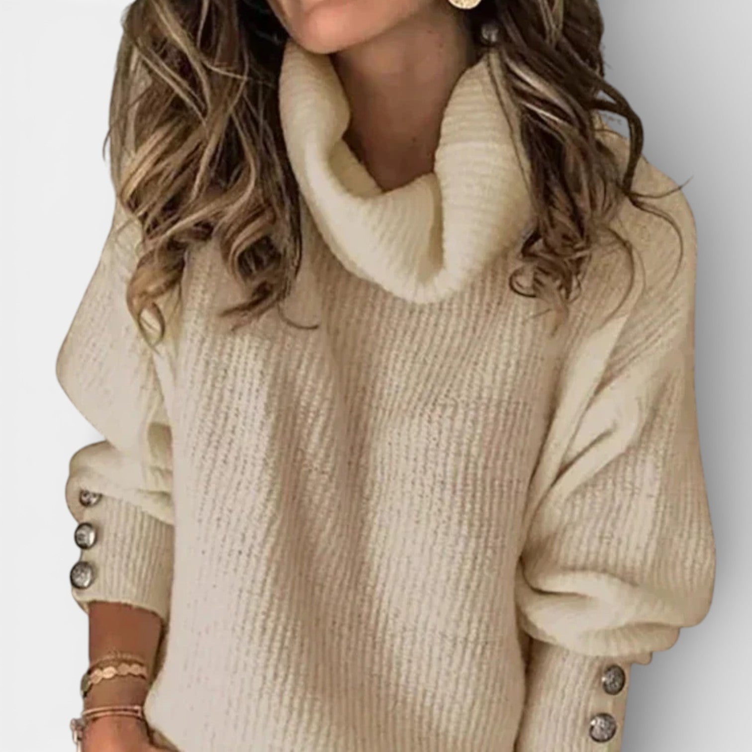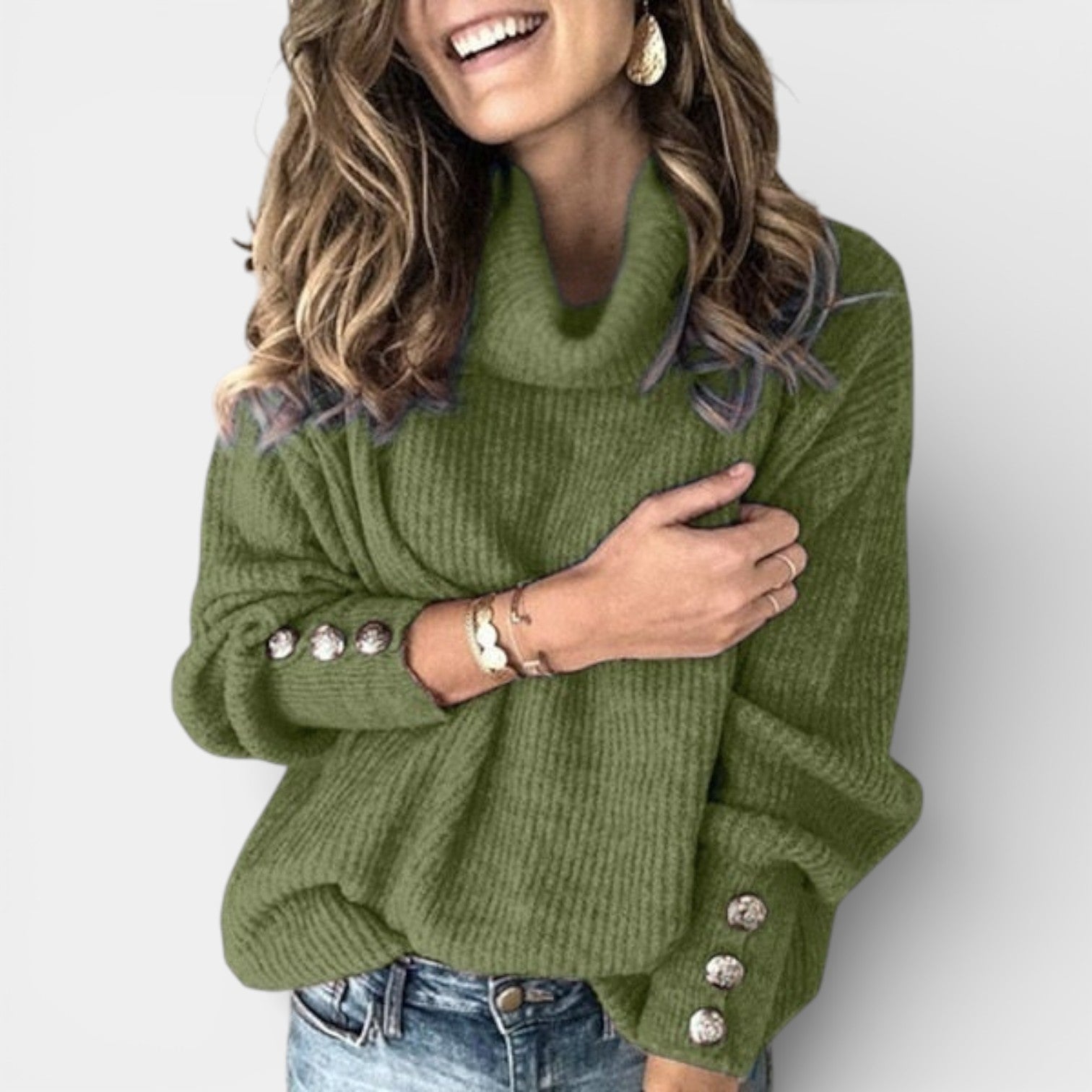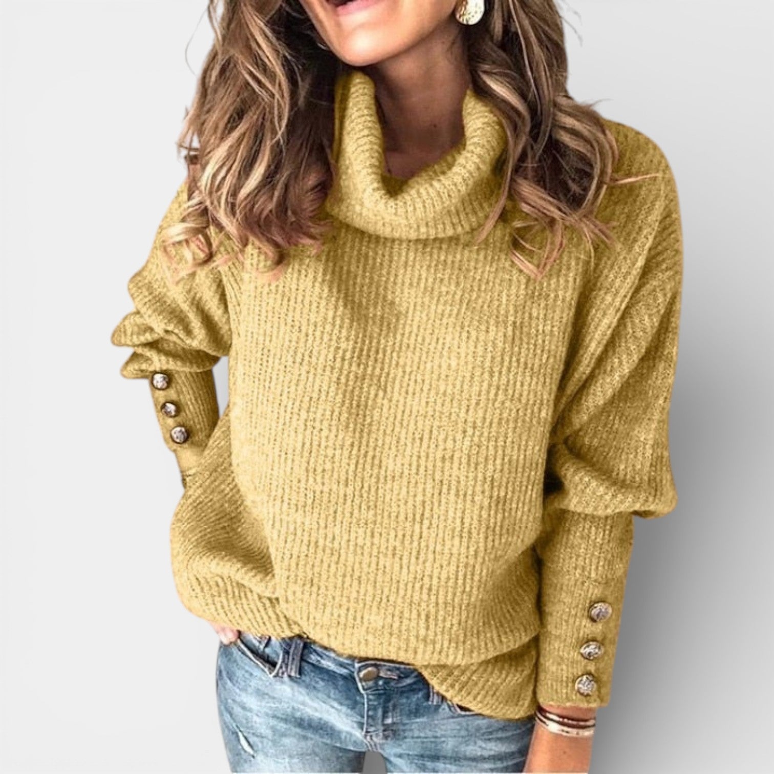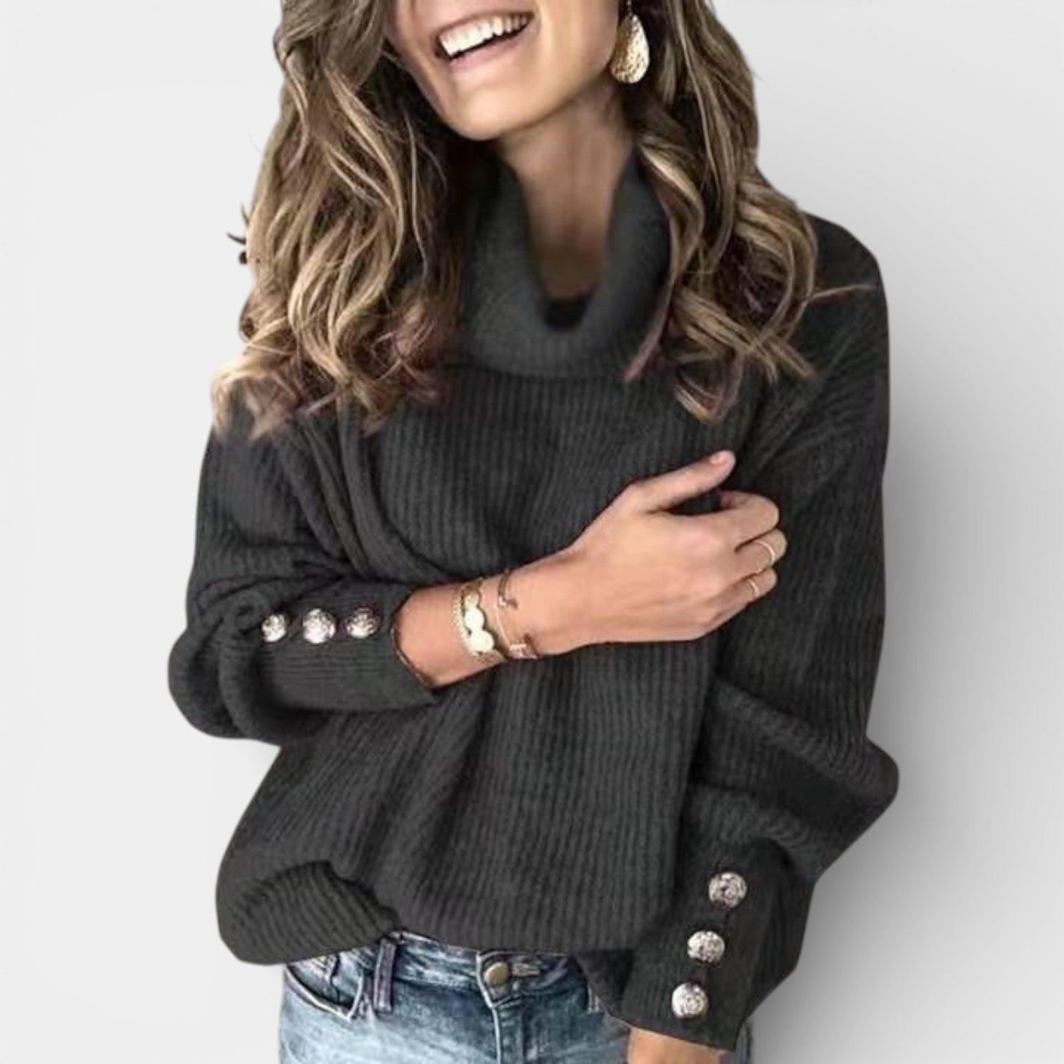 Tento pletený rolák je navržen pro chladnější dny, kdy chceš zůstat v teple a zároveň působit upraveně. Měkký a pružný úplet se přizpůsobí postavě bez pocitu tíhy, zatímco vyšší límec poskytuje příjemnou ochranu před chladem. Decentní knoflíky na rukávech dodávají svetru nenápadný stylový detail, díky kterému se hodí jak do kanceláře, tak na běžné denní nošení.