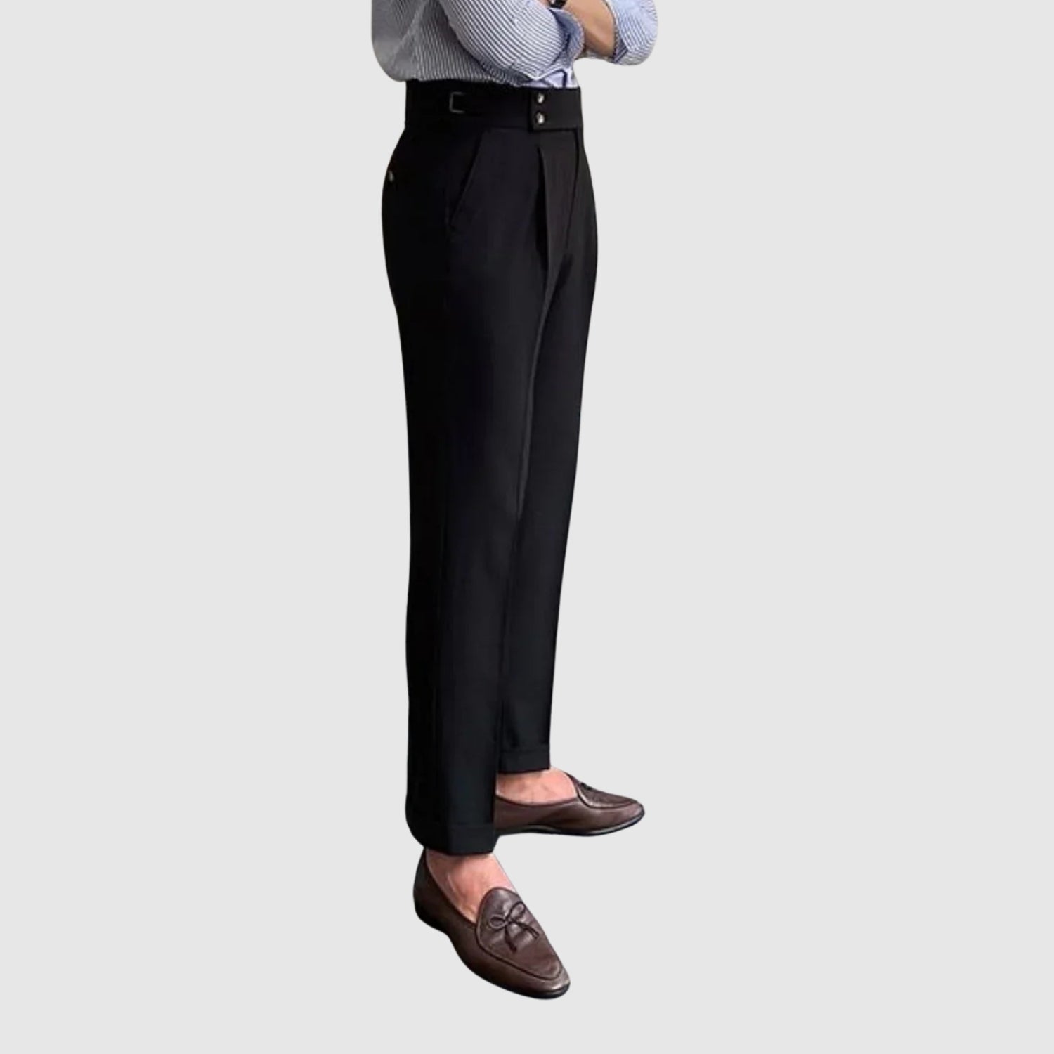 Tyto vintage kalhoty navazují na klasickou eleganci s rafinovaným a moderním stylem. Jejich dokonalý střih zeštíhluje postavu a nabízí pohodlí, aniž by obětoval sofistikovaný vzhled. Jsou ideální pro formální příležitosti, do práce nebo prostě pro chvíle, kdy chcete vyniknout s elegancí a noblesou.