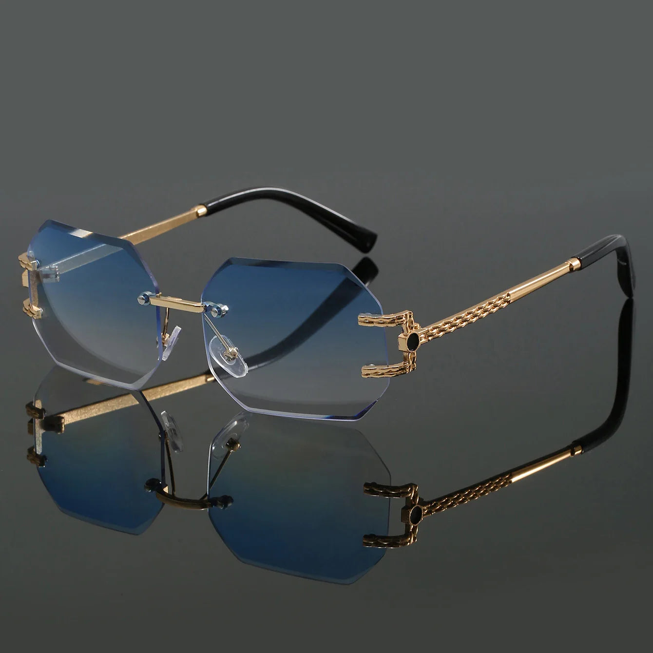 Zůstaňte v klidu s těmito elegantními bezrámovými gradientními čočkami, které jsou zvýrazněny složitým pleteným slitinovým rámem na spáncích. Konturovaný nosník a hladké konce spánků zajišťují bezpečné a pohodlné nošení po celý den.