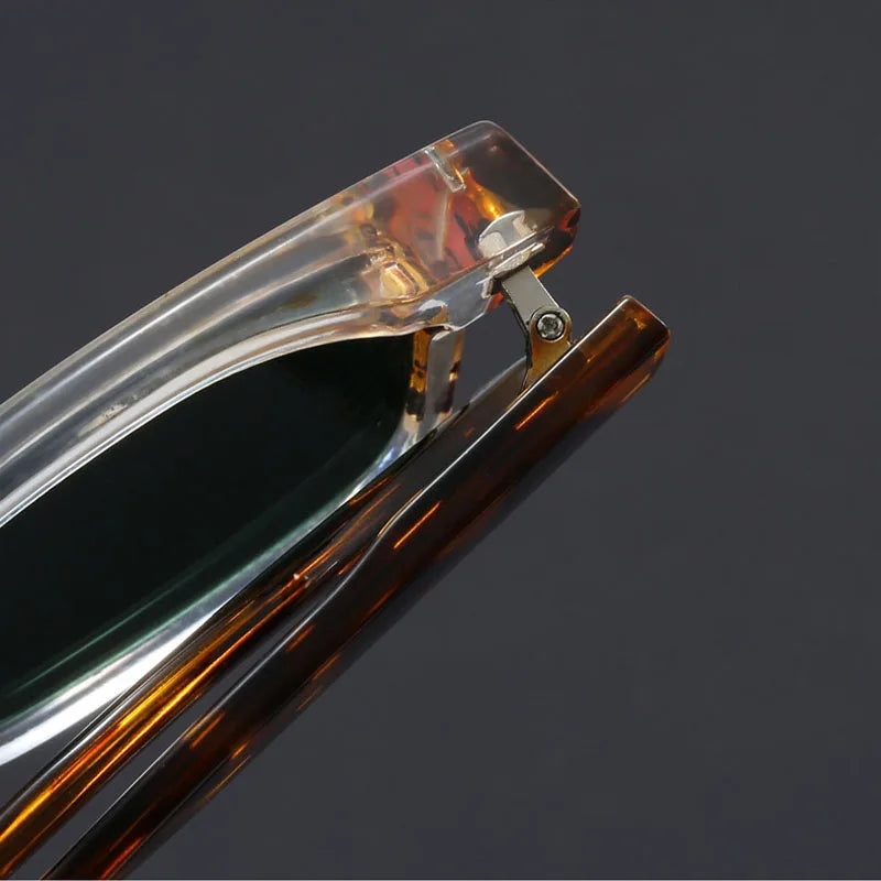 Sluneční brýle v dvojitém tónu s výraznými čočkami pro vyvážený moderní vzhled a nadčasový design. Ostrý čtvercový silueta kontrastuje s elegantními stranami pro decentní vzhled.