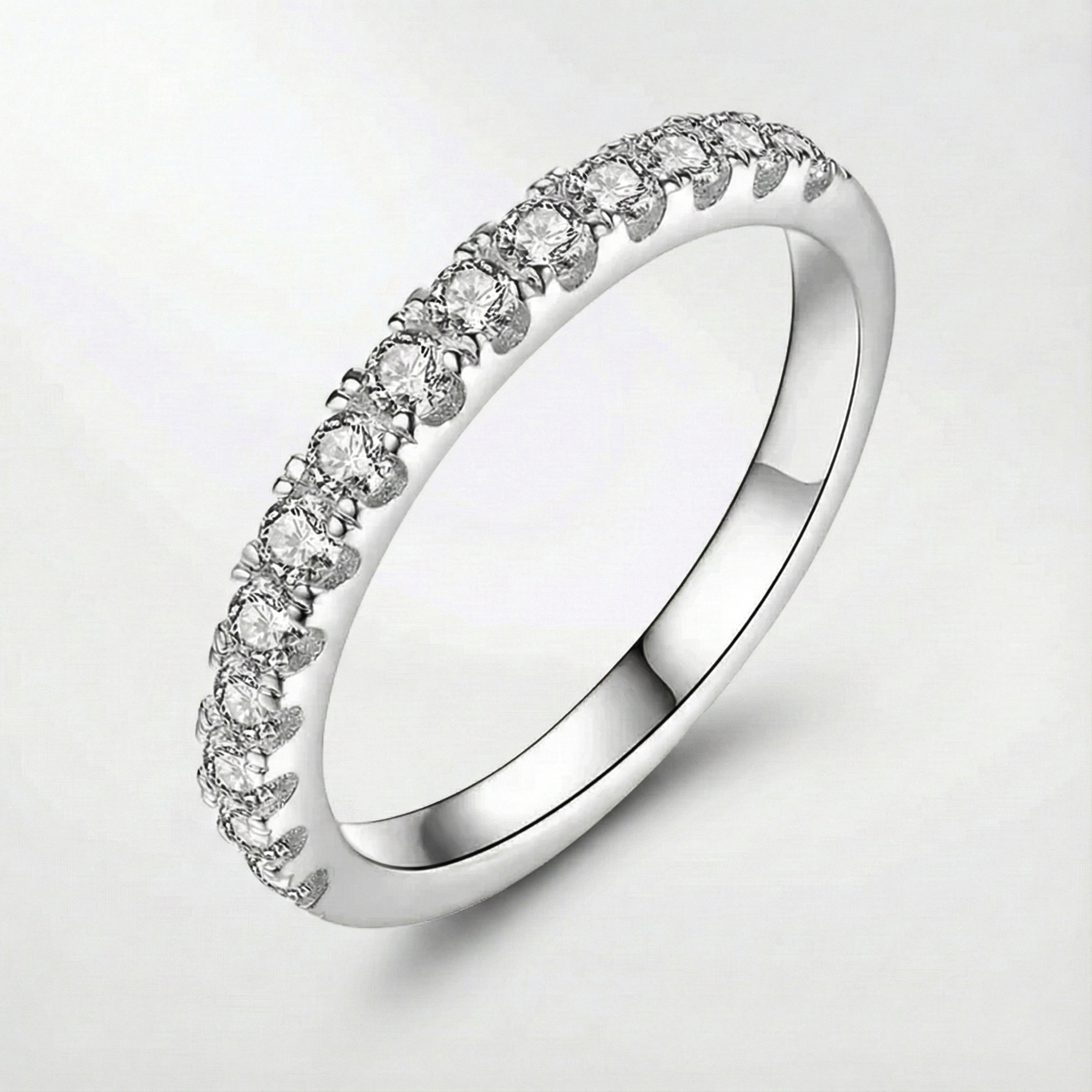 Moissanitový snubní prsten kombinuje chladný lesk s oslnivým ohněm moissanitových kamenů. Klasický a rafinovaný, je symbolem lásky, navržený tak, aby zářil po celý život.