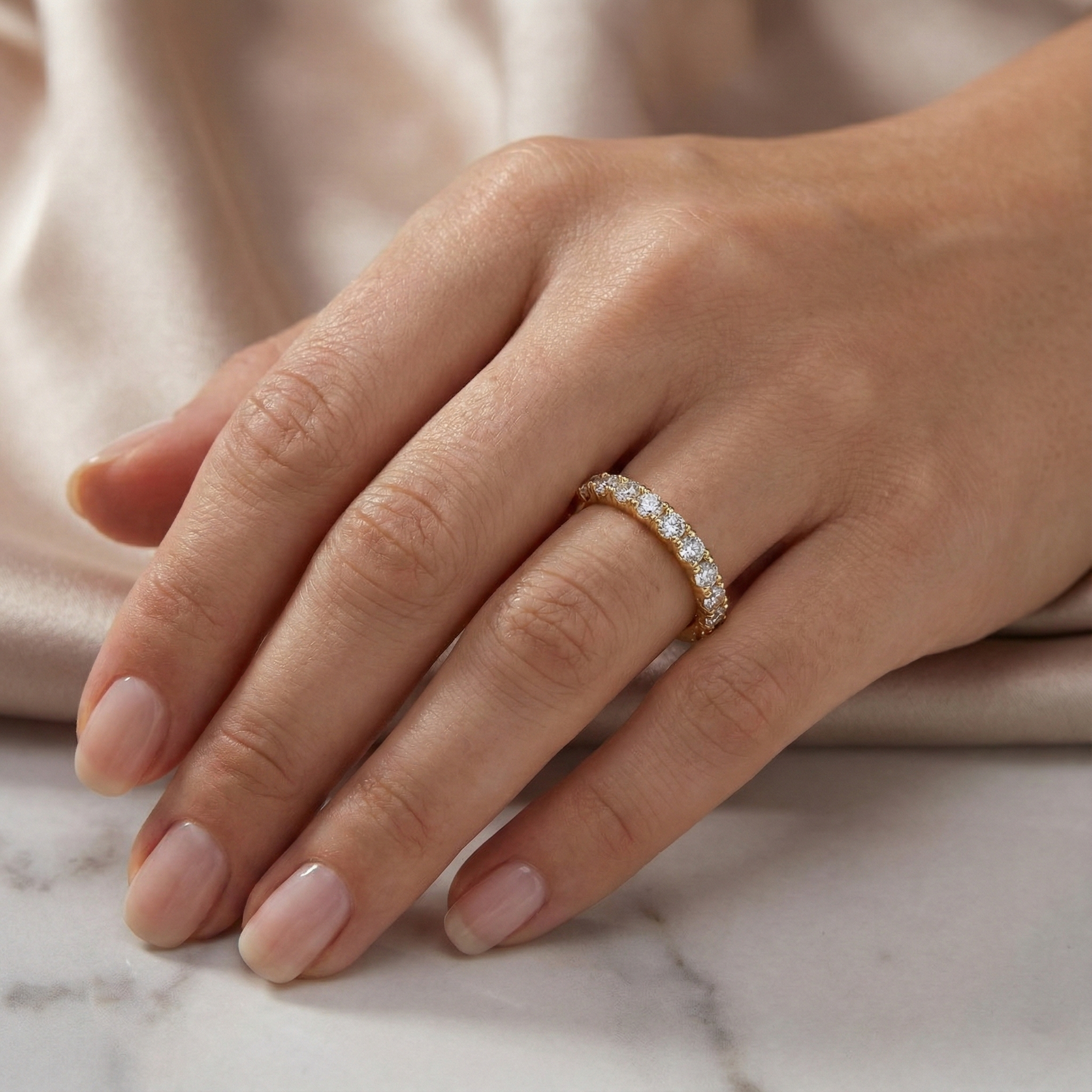 • Nadčasový design prstenu – perfektní samostatně nebo vrstvený se zásnubním prstenem