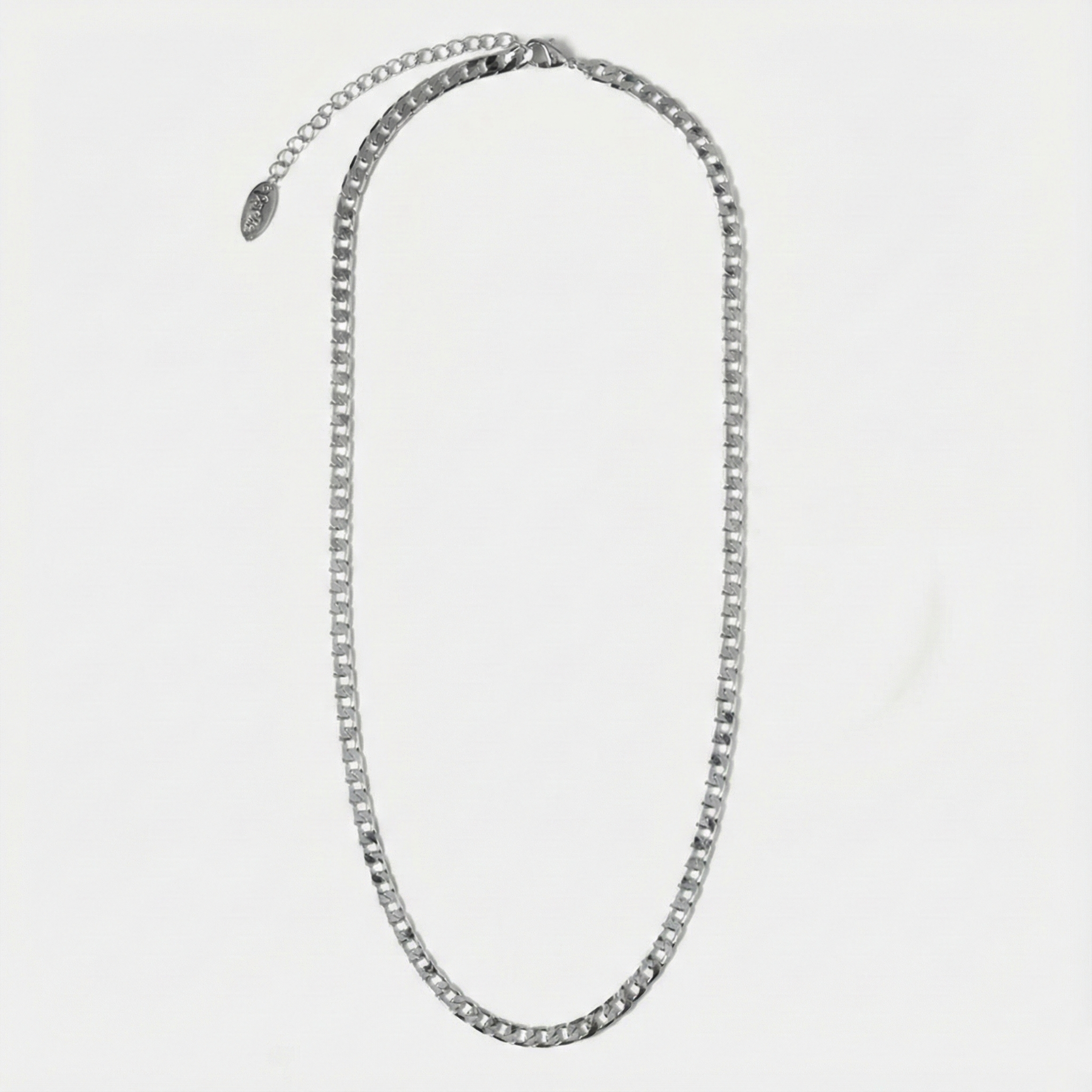 Plochá článková náhrdelník má hladké, do sebe zapadající články s oslnivým leskem. Je odolná a přesto rafinovaná, což z ní činí univerzální základní kousek, který lze nosit samostatně nebo v kombinaci s jinými šperky.