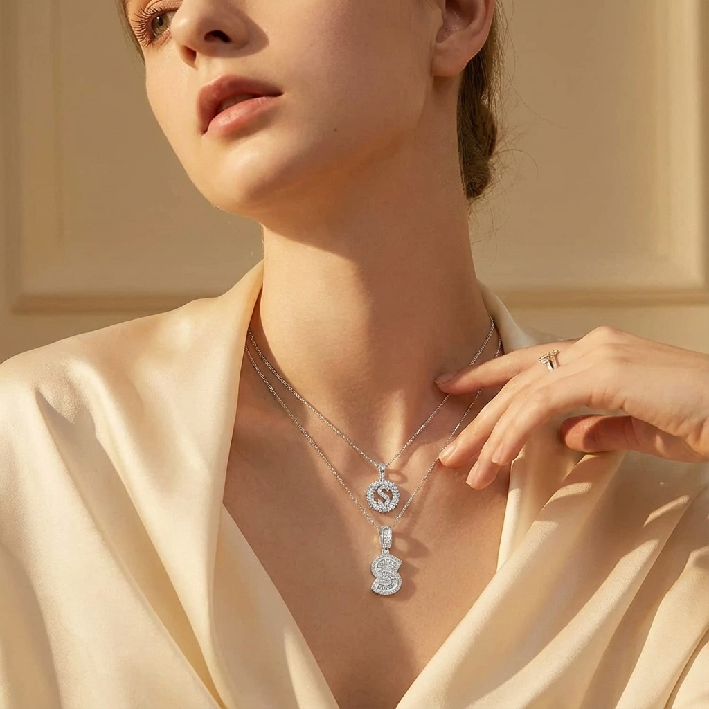 Sada náhrdelníků s iniciály z moissanitu