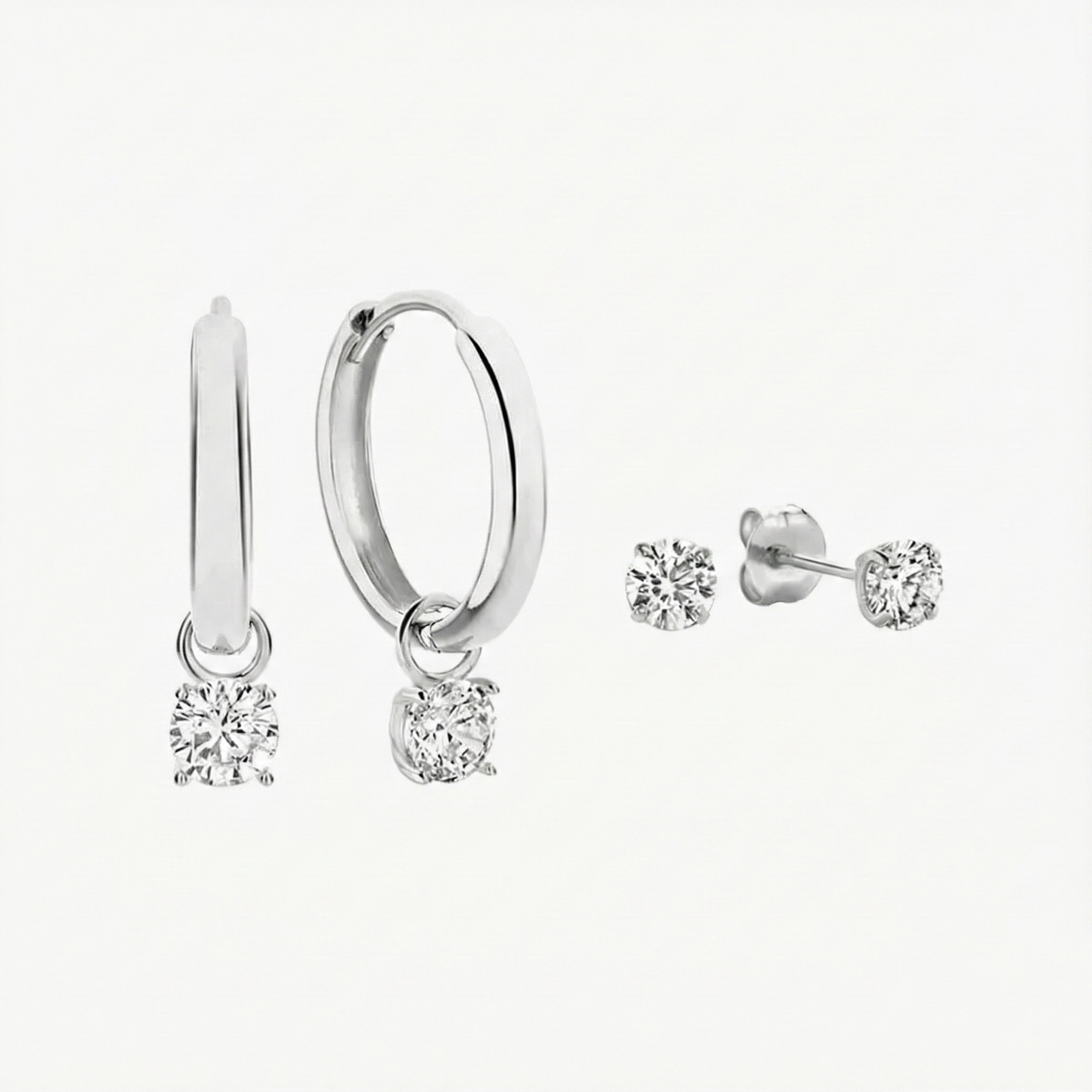 Set náušnic Larmes de Lune se vyznačuje zářivými kameny, které jsou zdobeny třpytivými, měsíčně inspirovanými prvky. S několika designy v jednom setu nabízí všestrannost pro každodenní eleganci i zvláštní příležitosti.