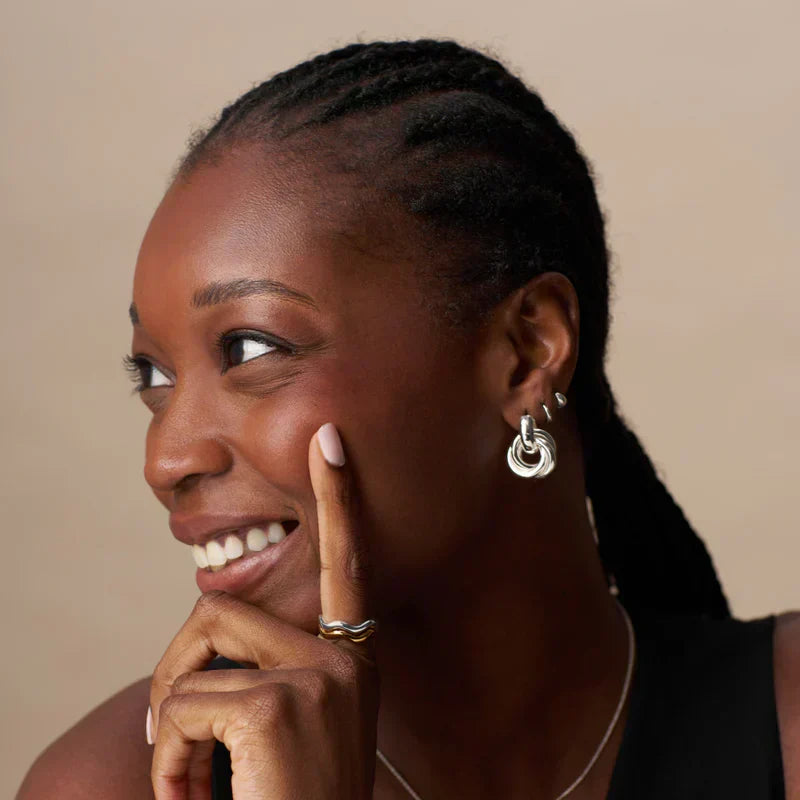 Náušnice Prohlášení Propletené mají štíhlé, překrývající se smyčky. Odvážné a přesto rafinované, přinášejí nádech moderního umění do každého outfitu.