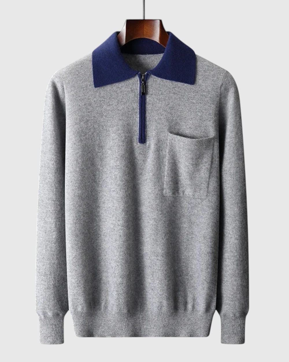 Polo Castelle Cashmere Zip-Up je navrženo pro muže, kteří ocení jemný luxus a moderní všestrannost. Vyrobeno z 100% prvotřídního kašmíru, nabízí ultra jemný pocit s lehkým teplem - ideální pro vyvýšené casual outfity, neformální pracovní prostředí nebo vrstvení pro elegantní vzhled.
