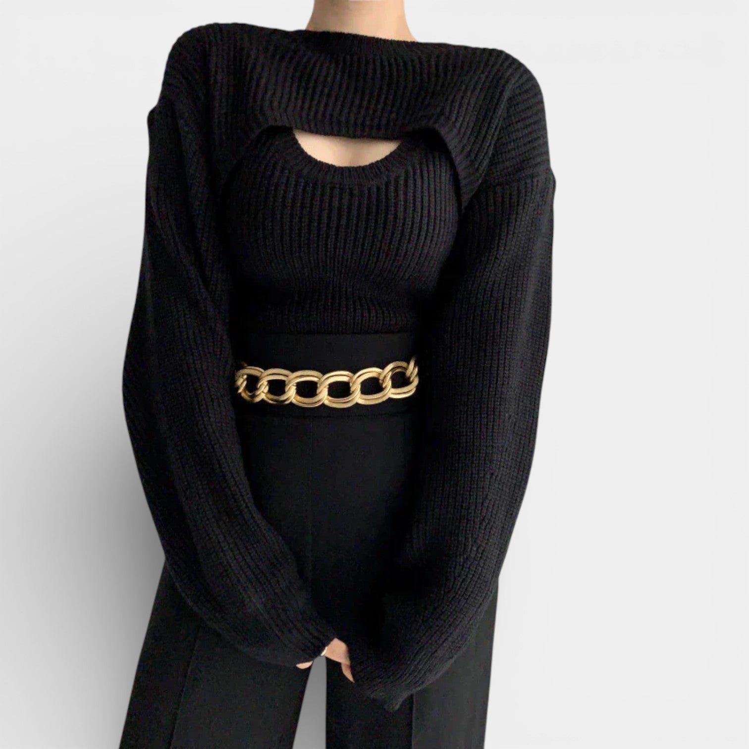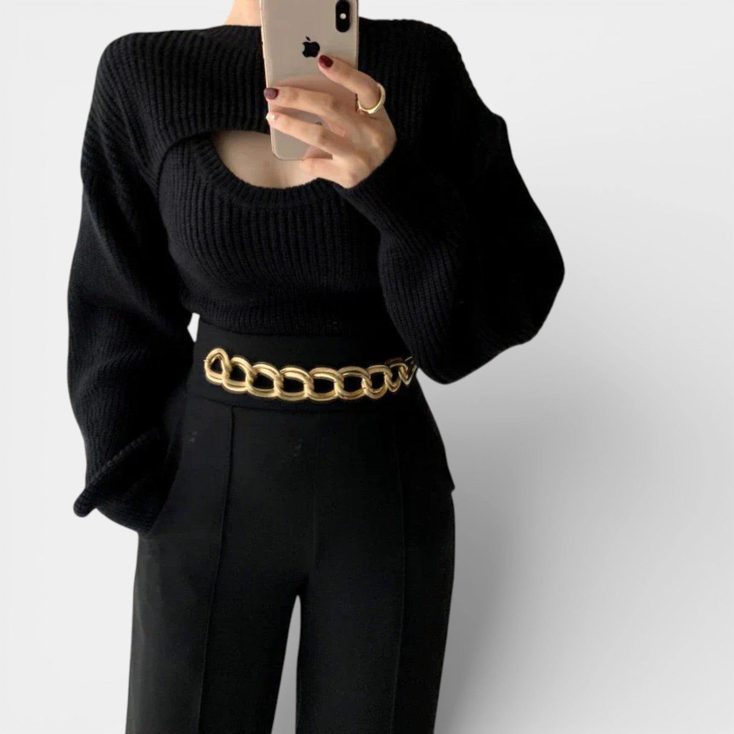 Kalina je přiléhavý svetr z žebrované pleteniny s charakteristickým výřezem u výstřihu, který přitahuje pohledy a dodává lehkost. Dlouhý rukáv a elastická struktura zajišťují, že model dobře sedí na postavě a zůstává pohodlný po celý den. Je to ideální volba jak k kalhotám s vysokým pasem, tak k elegantním soupravám, když chcete spojit pohodlí s výraznějším stylem.