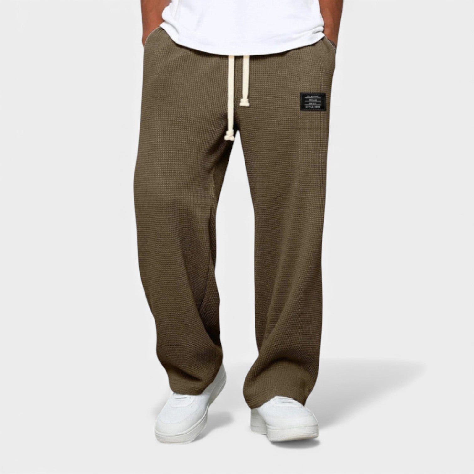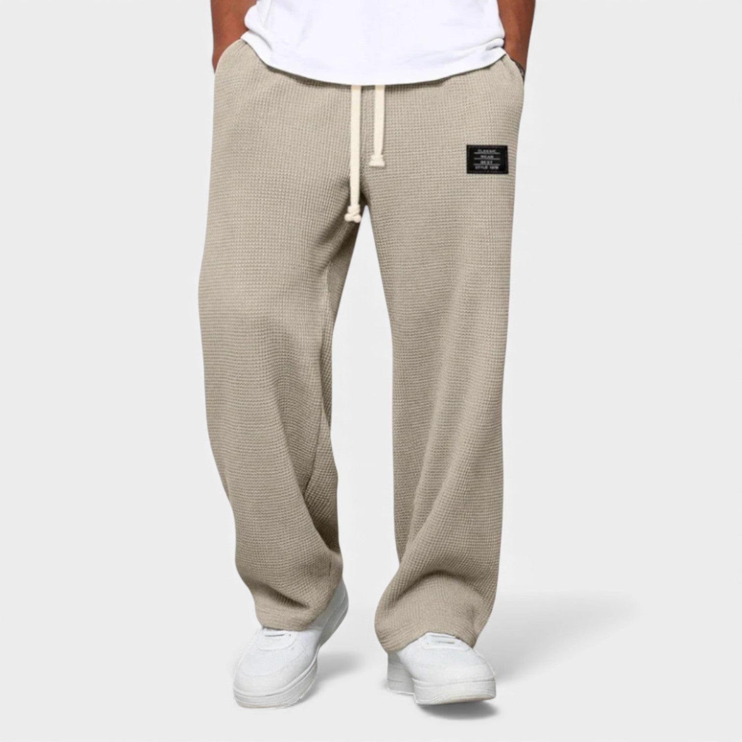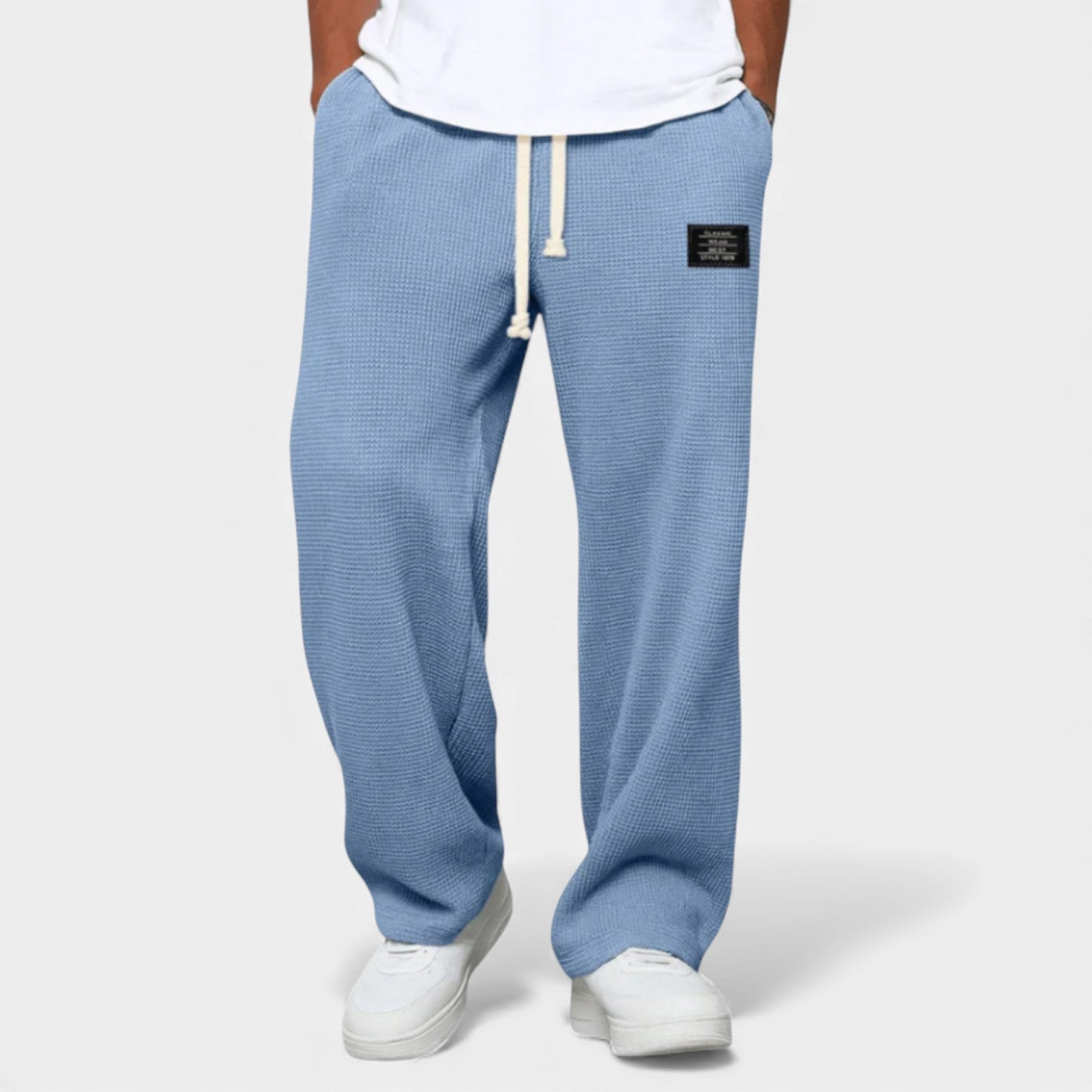 Kalhoty Piotr jsou navrženy pro pohodlí, které vydrží celý den. Prodyšná waffle tkanina je měkká na dotek a nabízí příjemnou lehkost, zatímco volný střih a nastavitelný pas se šňůrkou poskytují dokonalou volnost pohybu. Praktické kapsy dodávají funkčnost, díky čemuž jsou tyto kalhoty ideální jak pro domácí relax, tak pro stylové vycházení do města.