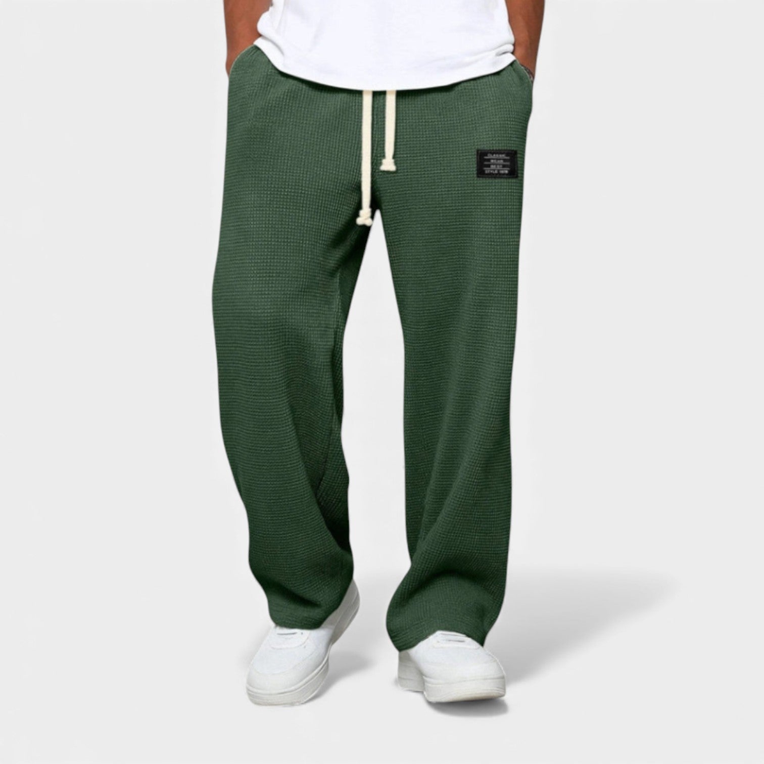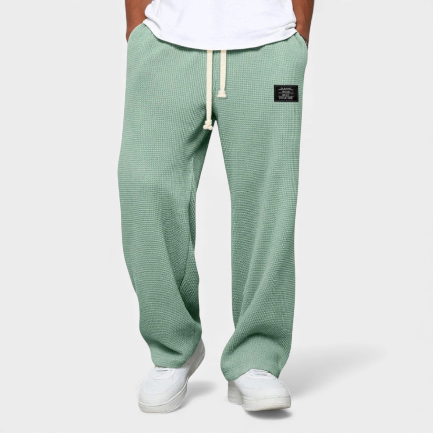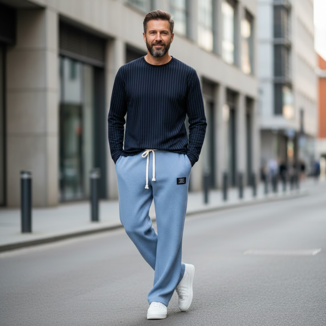 Kalhoty Piotr jsou navrženy pro pohodlí, které vydrží celý den. Prodyšná waffle tkanina je měkká na dotek a nabízí příjemnou lehkost, zatímco volný střih a nastavitelný pas se šňůrkou poskytují dokonalou volnost pohybu. Praktické kapsy dodávají funkčnost, díky čemuž jsou tyto kalhoty ideální jak pro domácí relax, tak pro stylové vycházení do města.